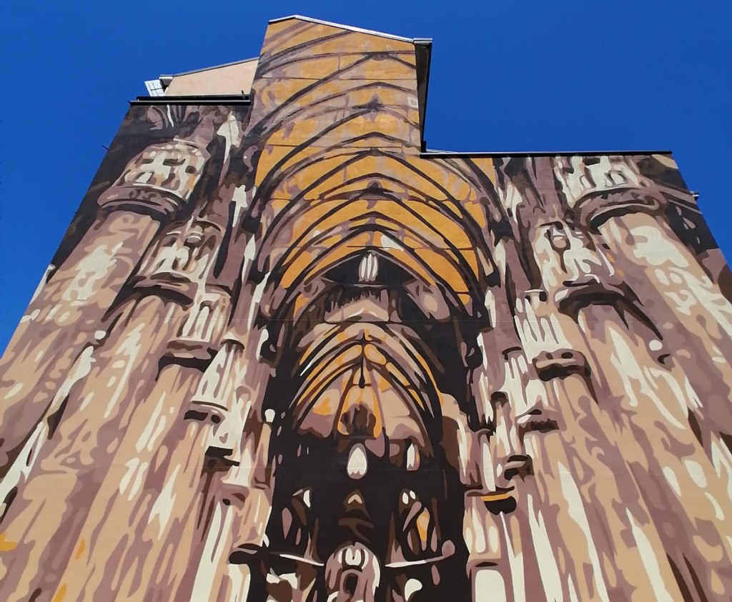 “Una poesia incisa nel marmo”: la bellezza del Duomo di Milano rivive nelle nostre strade, in Via Pitteri 17, attraverso il murale inaugurato il 21 giugno 2020 alla presenza di monsignor Carlo Azzimonti, vicario episcopale della città (qui il video dell’evento).