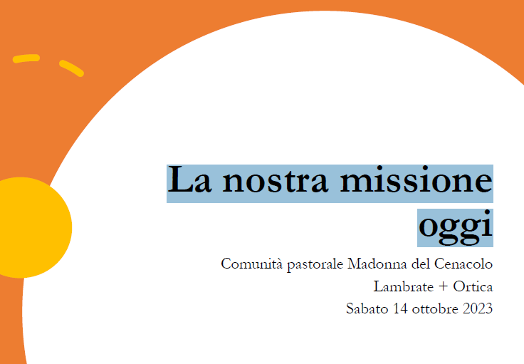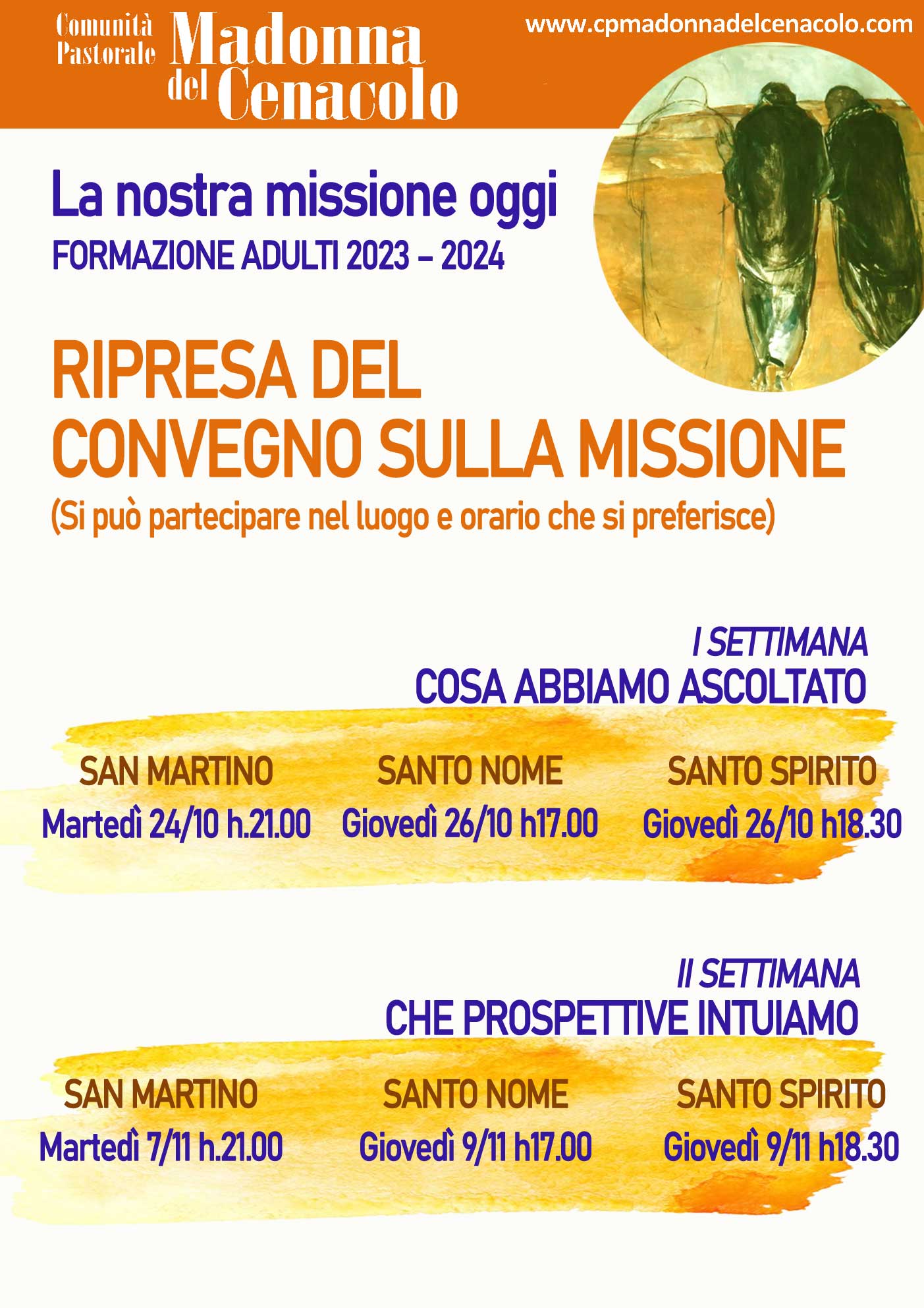 L’incontro si inserisce in un percorso di Formazione per gli adulti della CP che ha, appunto, come primo argomento la missione e i cui punti di riflessione emersi si protrarranno con la ripresa in ulteriori incontri sul tema in un ottica di analisi per il futuro della nostra realtà.