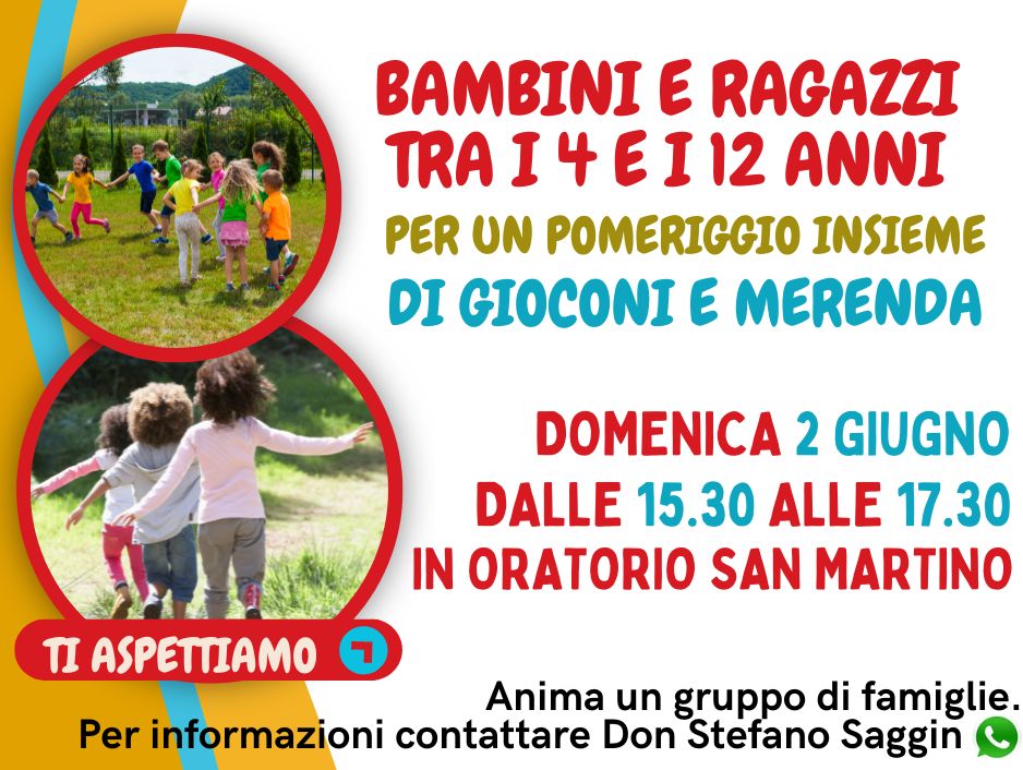 Pomeriggio di gioconi e merenda in oratorio San Martino: 02/06 ore 15.30