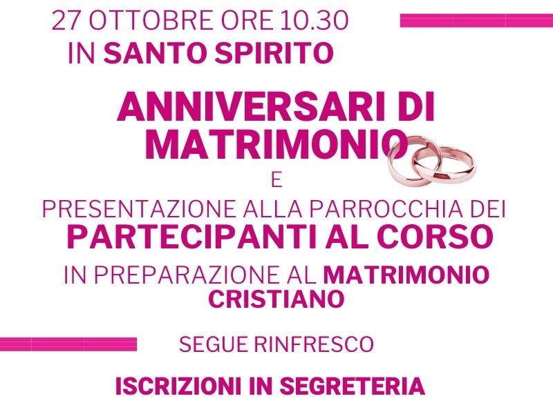ANNIVERSARI DI MATRIMONIO e presentazione partecipanti al CORSO PREMATRIMONIALE – 27/10