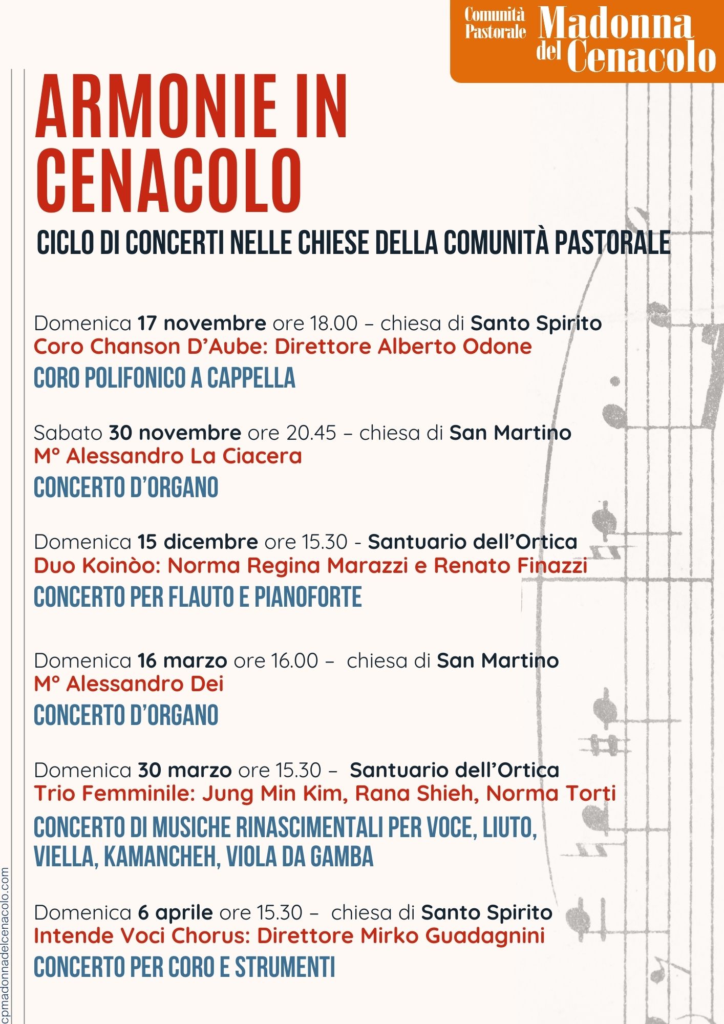 ARMONIE IN CENACOLO: Ciclo di concerti nelle chiese della Comunità Pastorale 2024-2025