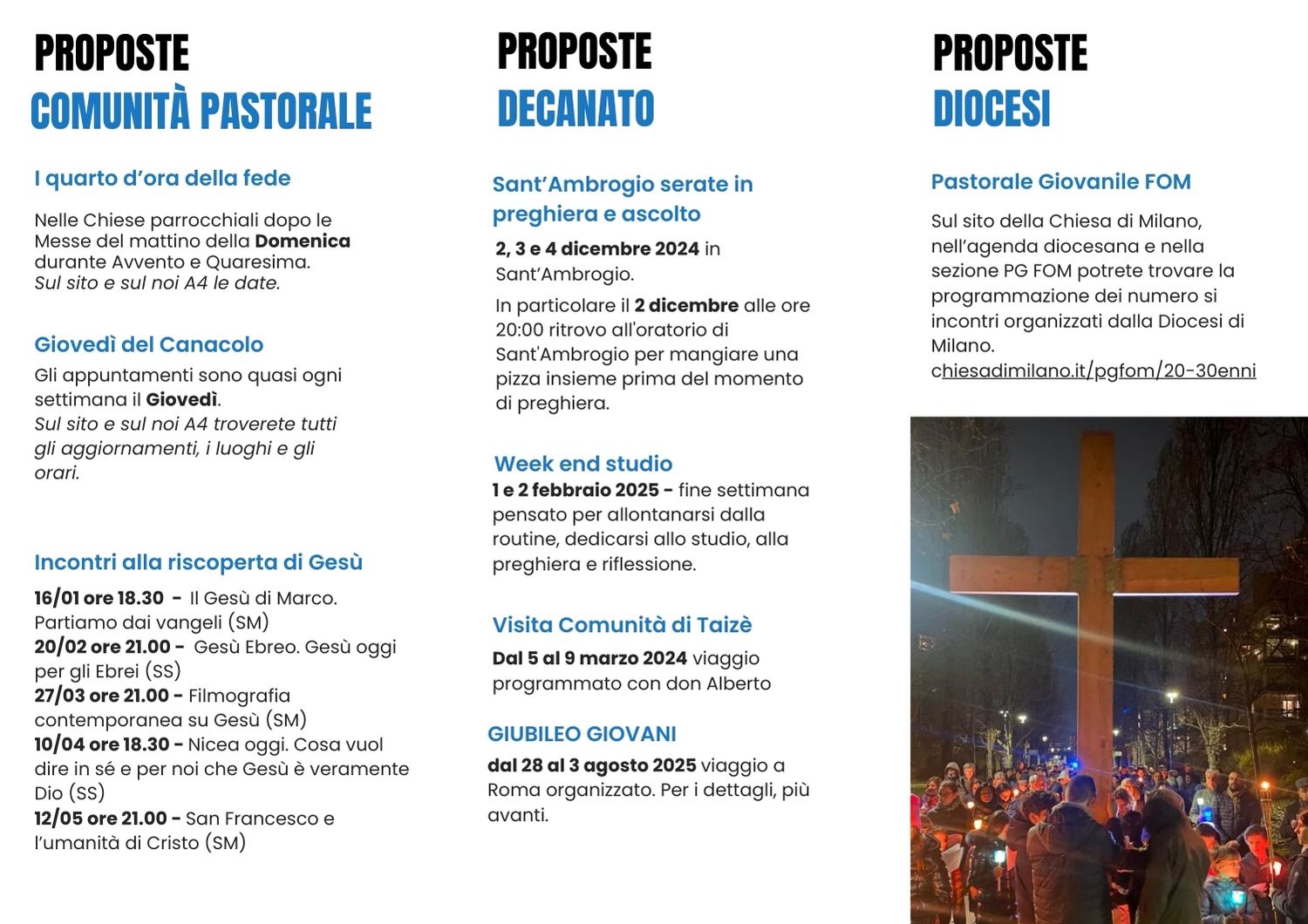 - un giorno infrasettimanale in coincidenza con gli incontri alla riscoperta di Gesù.