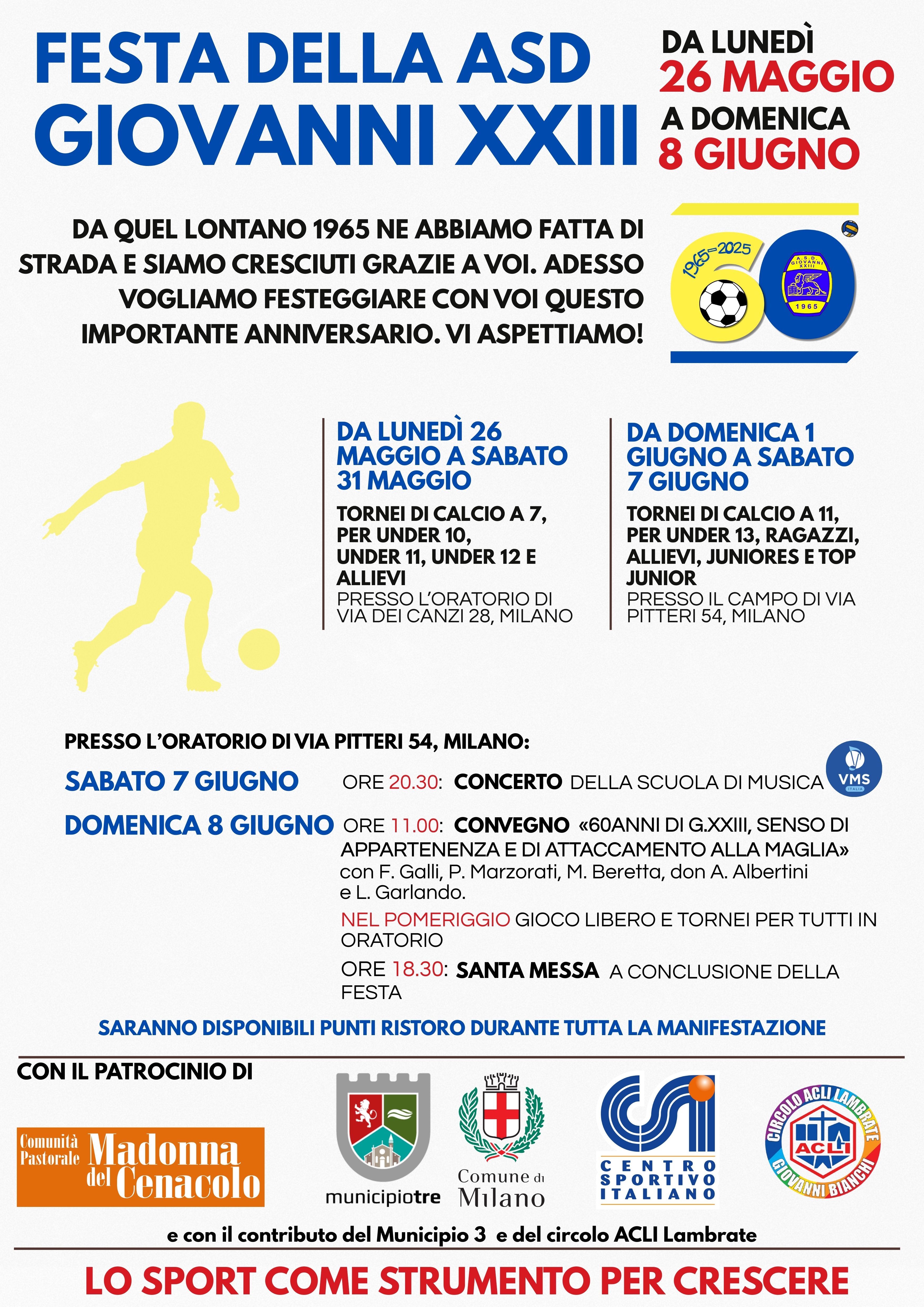 FESTA DELL’A.S.D. GIOVANNI XXIII nel 60° Anniversario. Tornei ed eventi dal 26 Maggio all’8 Giugno