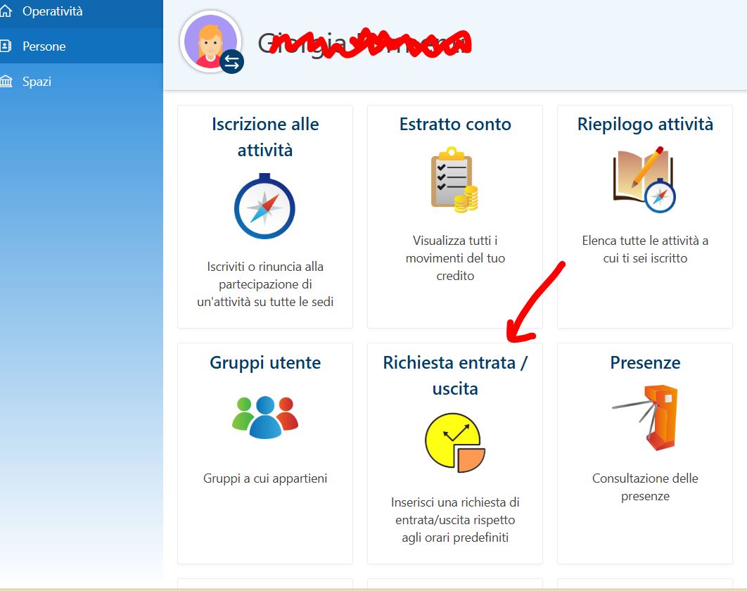 - SELEZIONARE LA VOCE INDICATA IN IMMAGINE: “Richiesta entrata/uscita”: