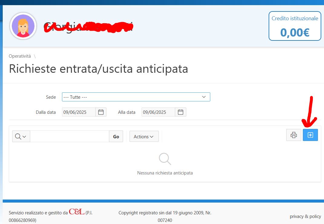 - CLICCARE SUL TASTO CON IL +, per aggiungere una richiesta di uscita: