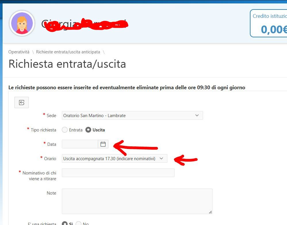 Selezionando l’uscita autonoma il ragazzo/a potrà uscire liberamente dall’oratorio alle 17.30 (orario fine giornata OFE) invece con l’uscita accompagnata dovrà essere presente un adulto designato.