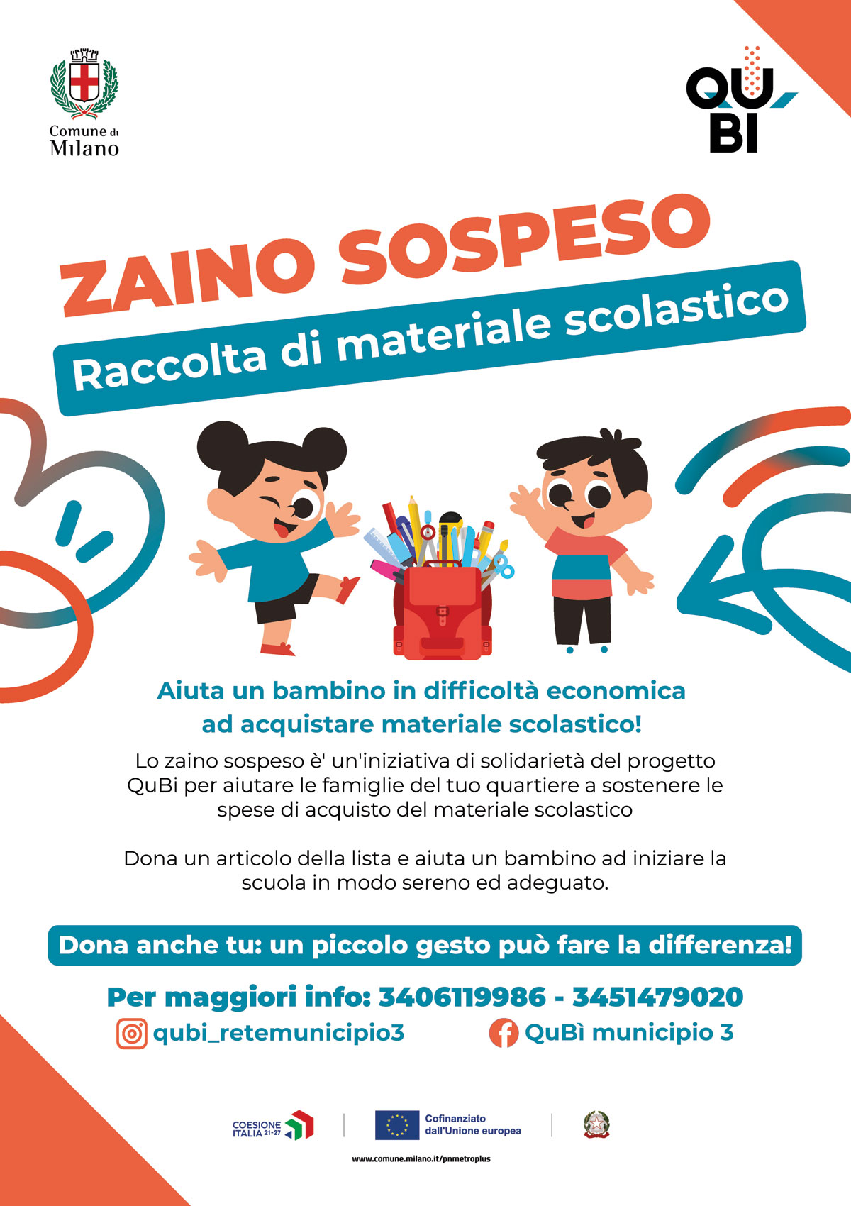 Anche quest’anno QuBi ha organizzato la raccolta di materiale scolastico nelle Esselunga per il 6 settembre.