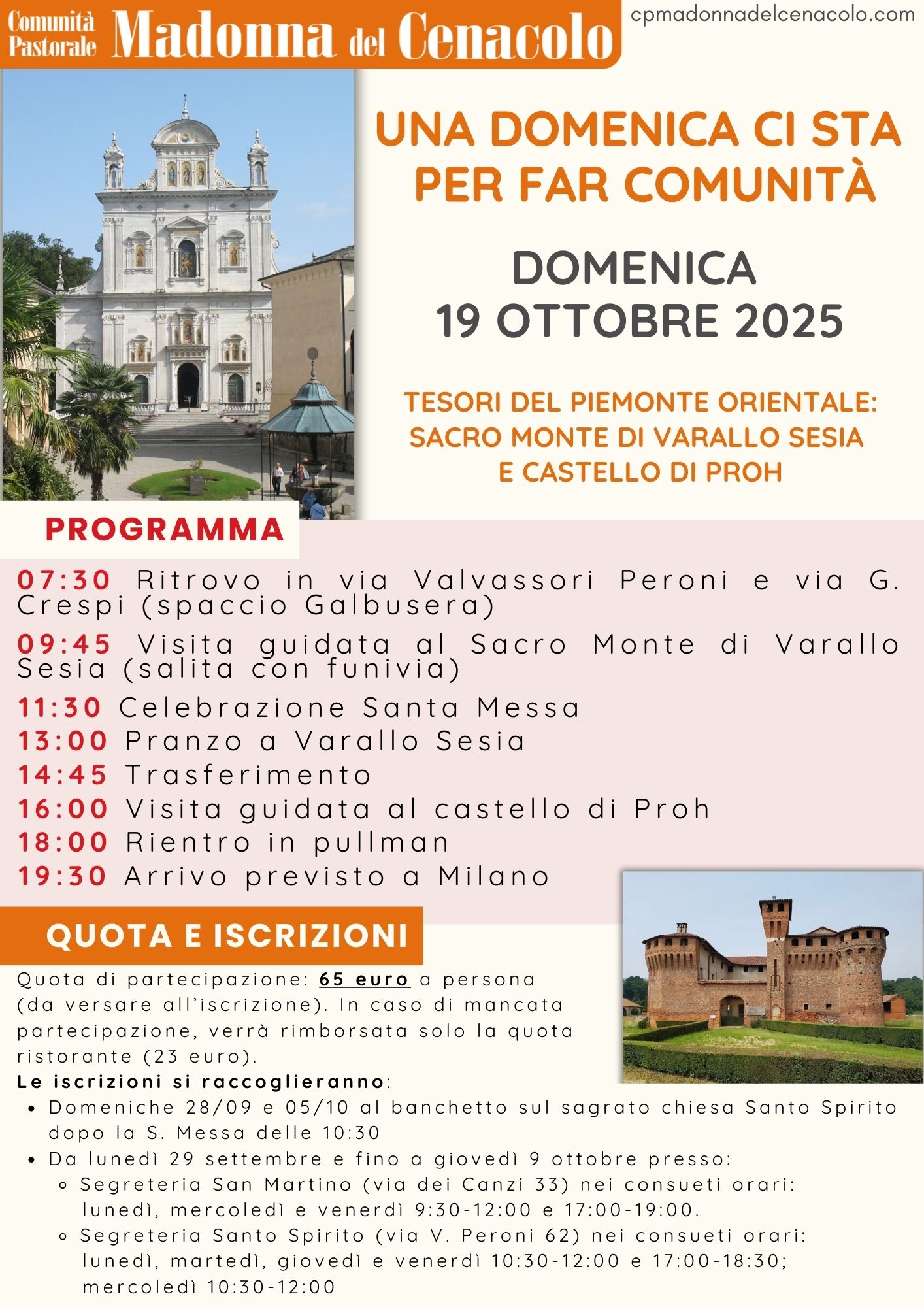 GITA DELLA COMUNITA’: Sacro Monte di Varallo Sesia e Castello di Proh. Domenica 19/10/2025.