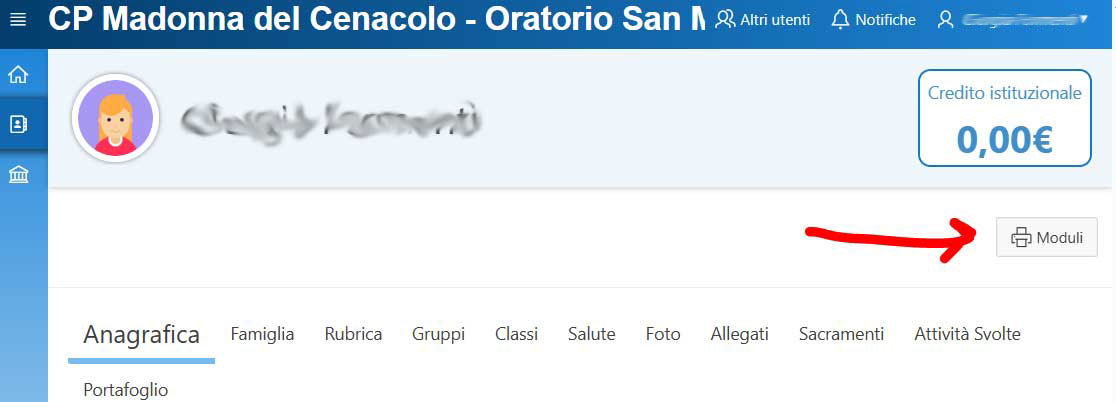 Per tutti i minorenni che sono già registrati al portale SANSONE (https://sansone.clsoft.it/) il modulo deve essere scaricato da SANSONE cliccando sul nome del figlio