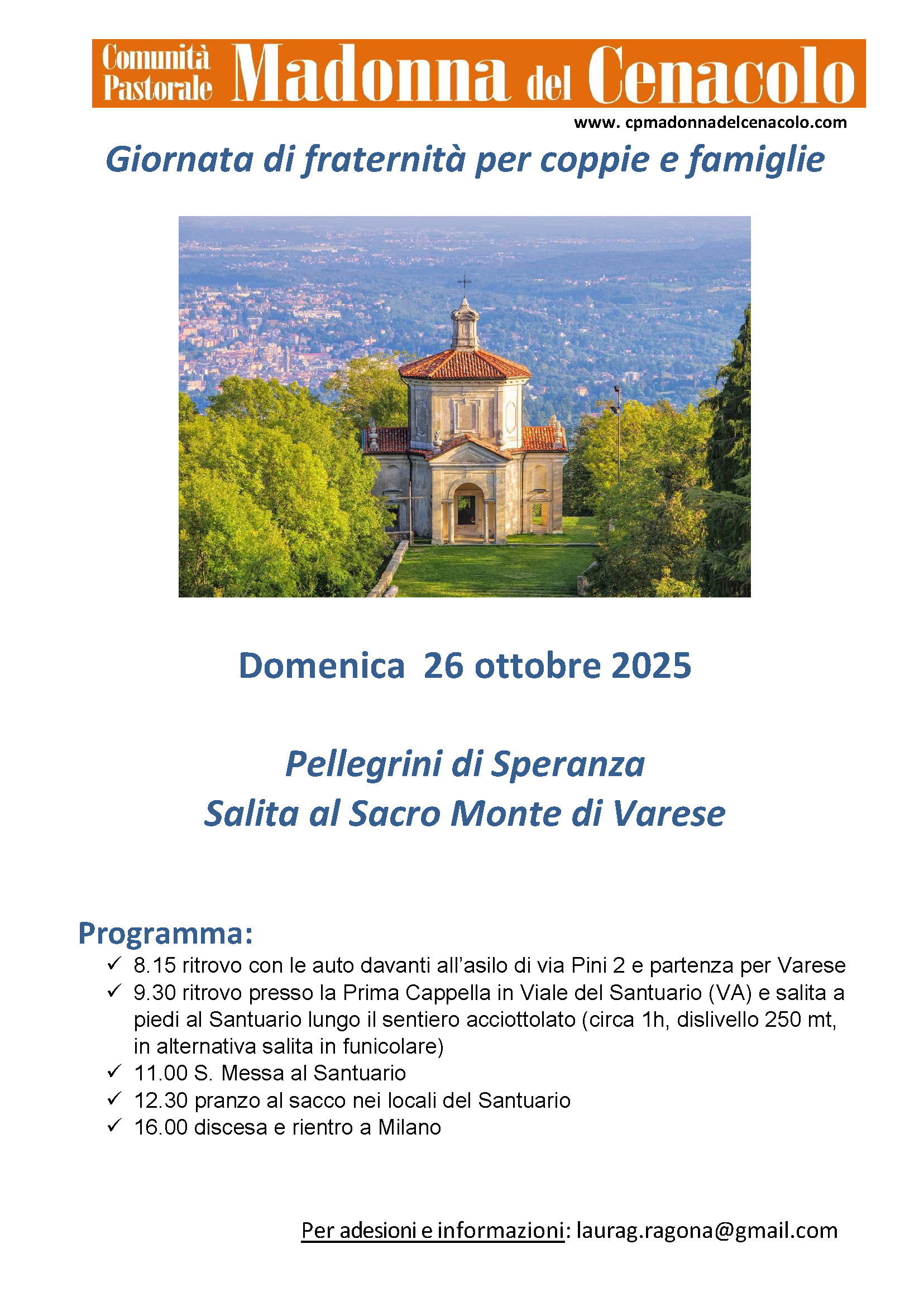 GRUPPO COPPIE SAN MARTINO: GIORNATA AL SACRO MONTE DI VARESE, info e programma