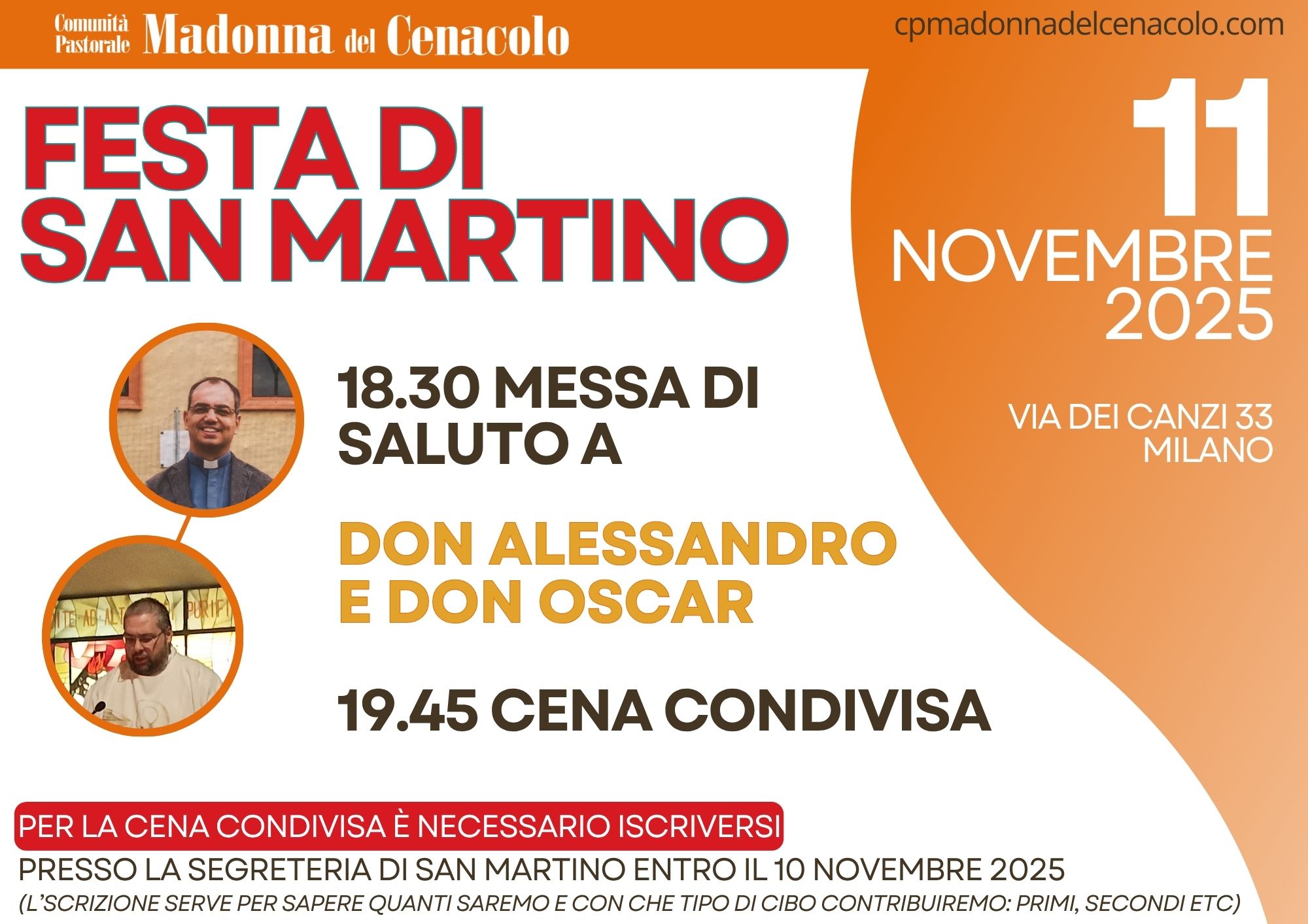 FESTA DI SAN MARTINO 11/11: Messa di saluto a Don Alessandro e Don Oscar e cena condivisa