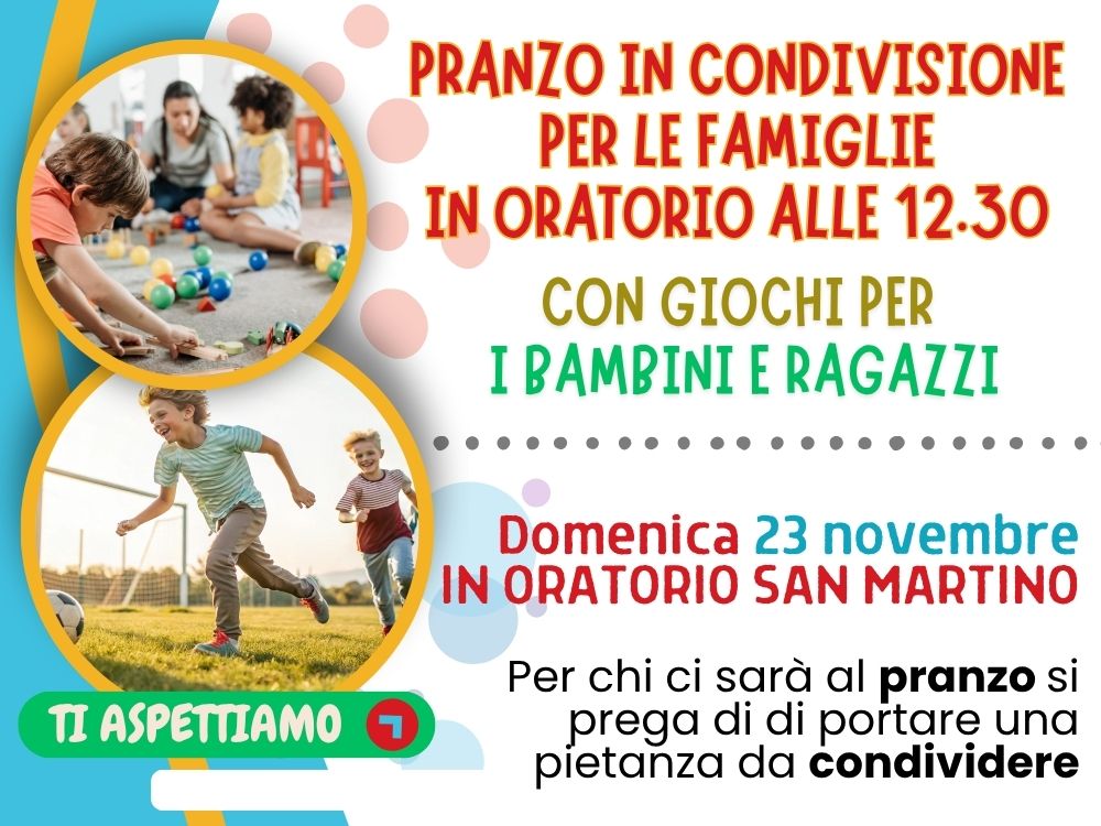 Pranzo in condivisione per famiglie e giochi in oratorio San Martino dopo la messa il 23/11
