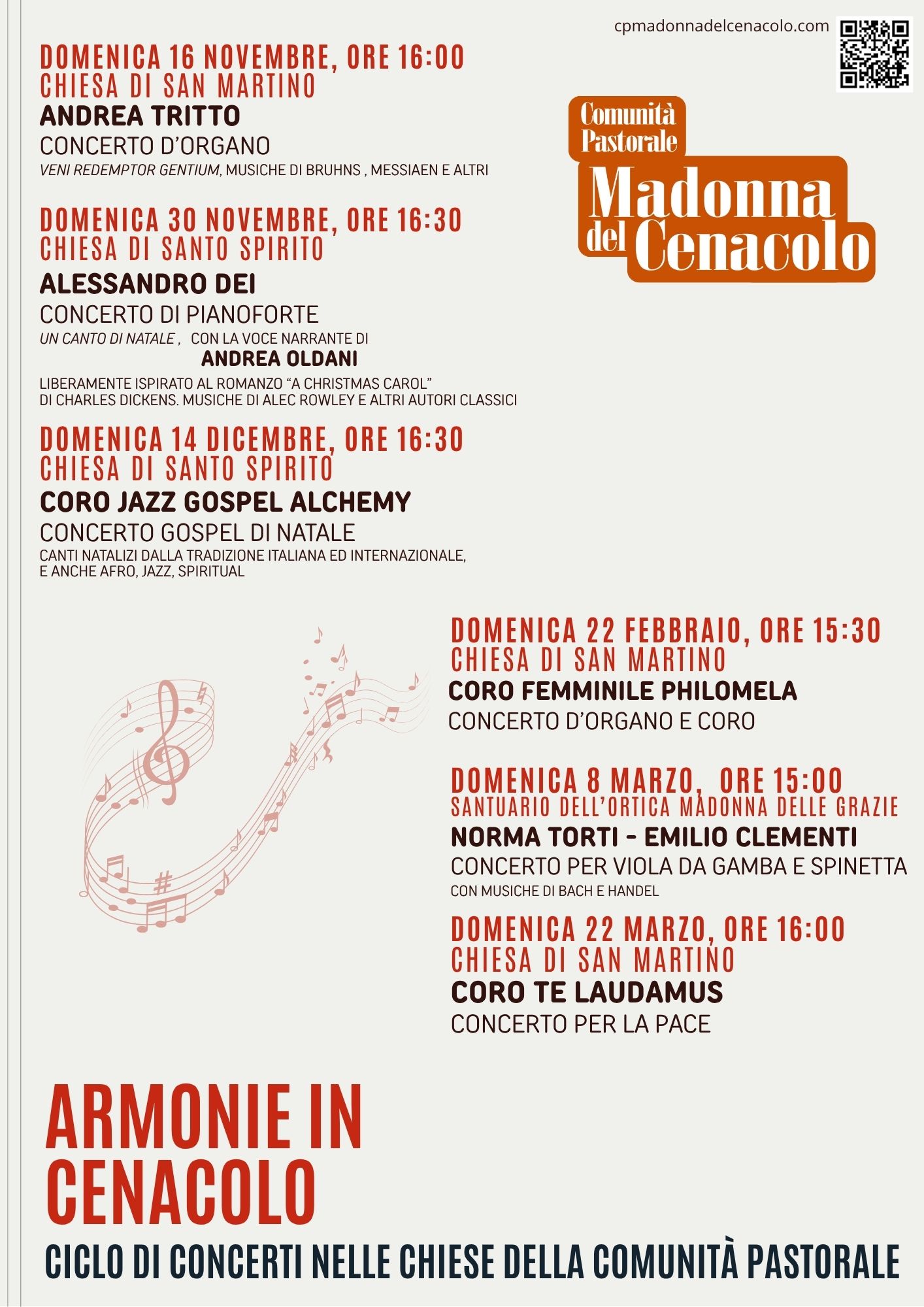 ARMONIE IN CENACOLO: ciclo di Concerti nelle chiese della comunità pastorale per il 2025-2026 Postato il 4 dicembre 20254 dicembre 2025 di cpmadonnadelcenacolo PROSSIMO CONCERTO IL 30 DICEMBRE ALLE 16.30: TUTTO IL PROGRAMMA: Condividi: Fai clic per inviare un link a un amico via e-mail (Si apre in una nuova finestra) E-mail Fai clic per condividere su WhatsApp (Si apre in una nuova finestra) WhatsApp Fai clic per condividere su Facebook (Si apre in una nuova finestra) Facebook Fai clic per condividere su X (Si apre in una nuova finestra) X Fai clic qui per stampare (Si apre in una nuova finestra) Stampa Correlati