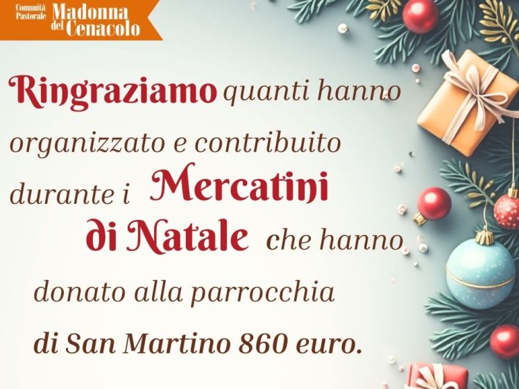 Appuntamenti e avvisi della Comunità Pastorale – 14/12/2025 Postato il 13 dicembre 202531 gennaio 2026 di cpmadonnadelcenacolo CONSULTA IL NOTIZIARIO degli avvisi settimanali “Noi a4” in formato PDF __________________ CELEBRAZIONI PENITANZIALI COMUNITARIE E CONFESSIONI – NATALE 2025 __________________ MESSE NELLA COMUNITA’ PASTORALE DAL 24 DICEMBRE AL 6 GENNAIO 2025 __________________ ARMONIE IN CENACOLO: ciclo di Concerti nelle chiese della comunità pastorale per il 2025-2026 __________________ TOMBOLATA DI NATALE in Santo Spirito il 21 dicembre alle 16. __________________ ASD GXXIII: FESTA DI NATALE 20 dicembre ore 16.30 __________________ I QUARTO D’ORA DELLA FEDE, Avvento 2025. Audio degli incontri precedenti. __________________ CARITAS: Raccolta di AVVENTO 2025 __________________ BENEDIZIONI NATALIZIE 2025. Nell’articolo le date delle PREGHIERE NEGLI SPAZI VERDI delle visite nelle case __________________ Corso di preparazione al MATRIMONIO CRISTIANO __________________ Mercatini di Natale 2025 __________________ SCARICA L’AGENDA DI AVVENTO 2025 __________________ La Bibbia giorno per giorno, due percorsi delle Diocesi: Il nuovo Testamento e I libri storici __________________ Notiziario quindicinale con articoli e approndimenti PROGETTO PASTORALE della Comunità Pastorale Madonna del Cenacolo__________________ VAI ALL’HOME PAGE DEL SITO Condividi: Invia un link a un amico via e-mail (Si apre in una nuova finestra) E-mail Condividi su WhatsApp (Si apre in una nuova finestra) WhatsApp Tweet Stampa (Si apre in una nuova finestra) Stampa Mi piace Caricamento... Correlati