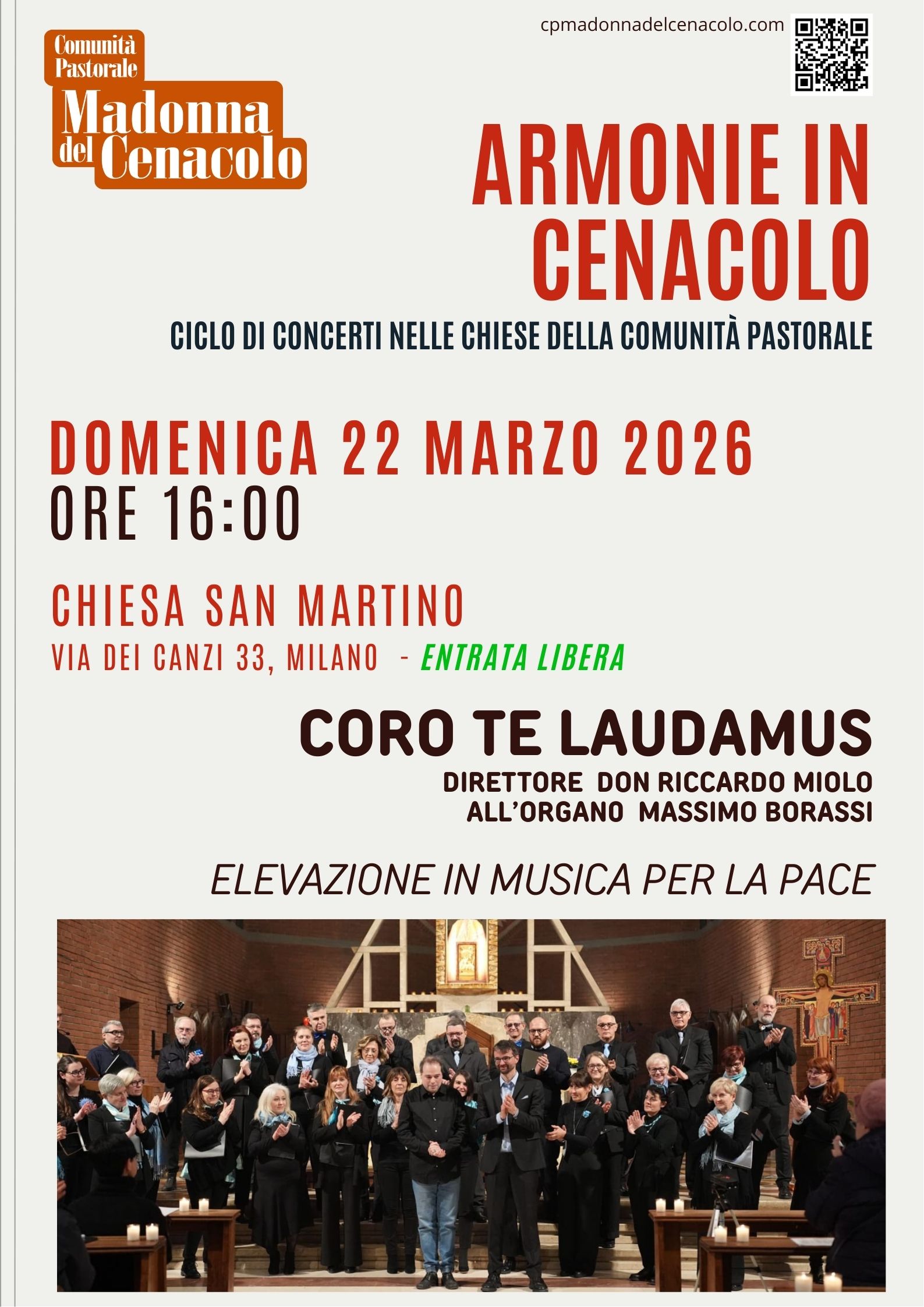 ARMONIE IN CENACOLO: Prossimo appuntamento il 22 marzo in San Martino con il coro Te Laudamus. Postato il 9 febbraio 202618 marzo 2026 di cpmadonnadelcenacolo PROSSIMO CONCERTO: SCARICA IL LIBRETTO DEL CONCERTO libretto_pace_A4_san martinoDownload TUTTO IL PROGRAMMA: Condividi: Invia un link a un amico via e-mail (Si apre in una nuova finestra) E-mail Condividi su WhatsApp (Si apre in una nuova finestra) WhatsApp Tweet Stampa (Si apre in una nuova finestra) Stampa Mi piace Caricamento... Correlati