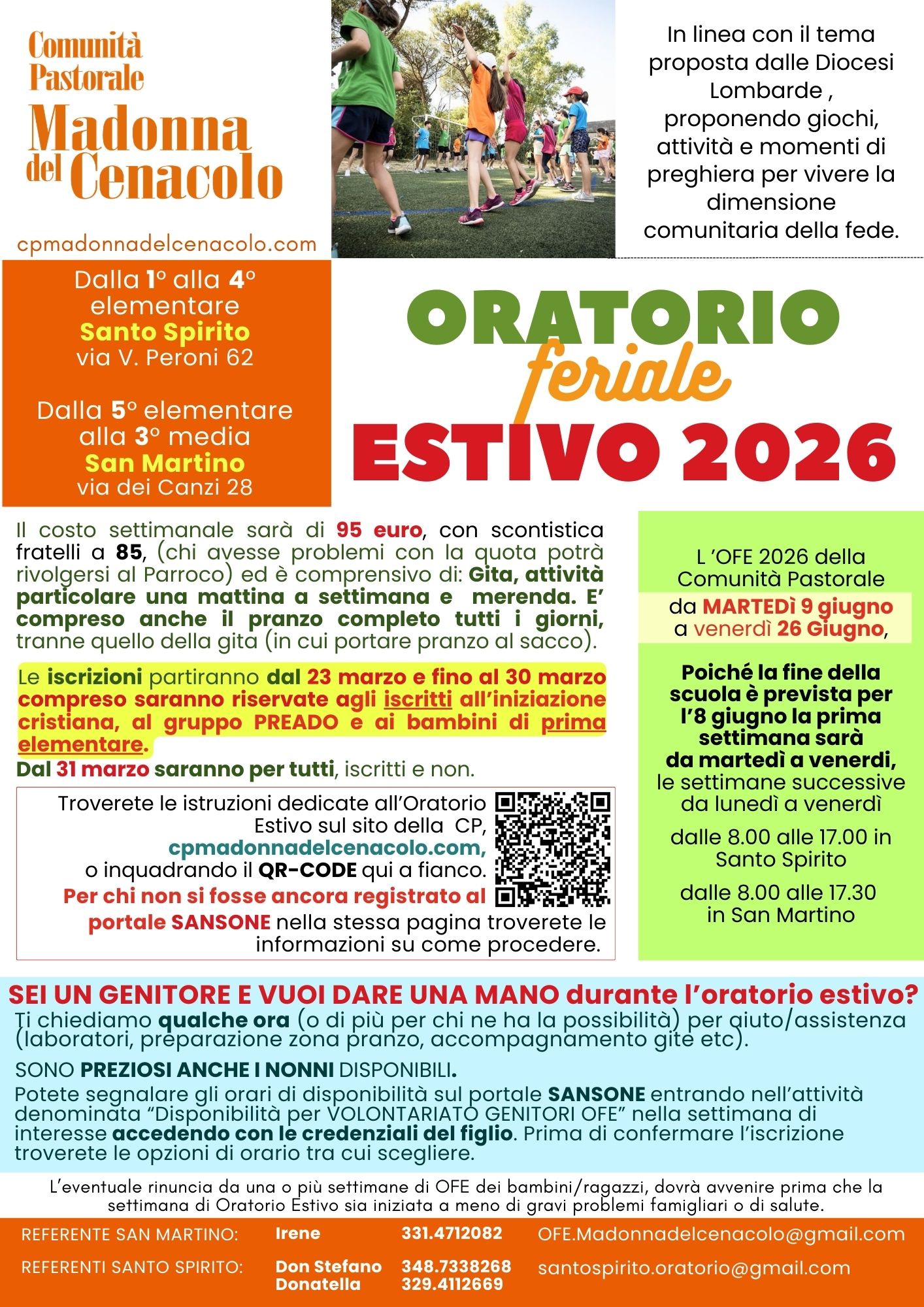 REFERENTI SANTO SPIRITO: Don Stefano 348.7338268, Donatella 329.4112669 – santospirito.oratorio@gmail.com