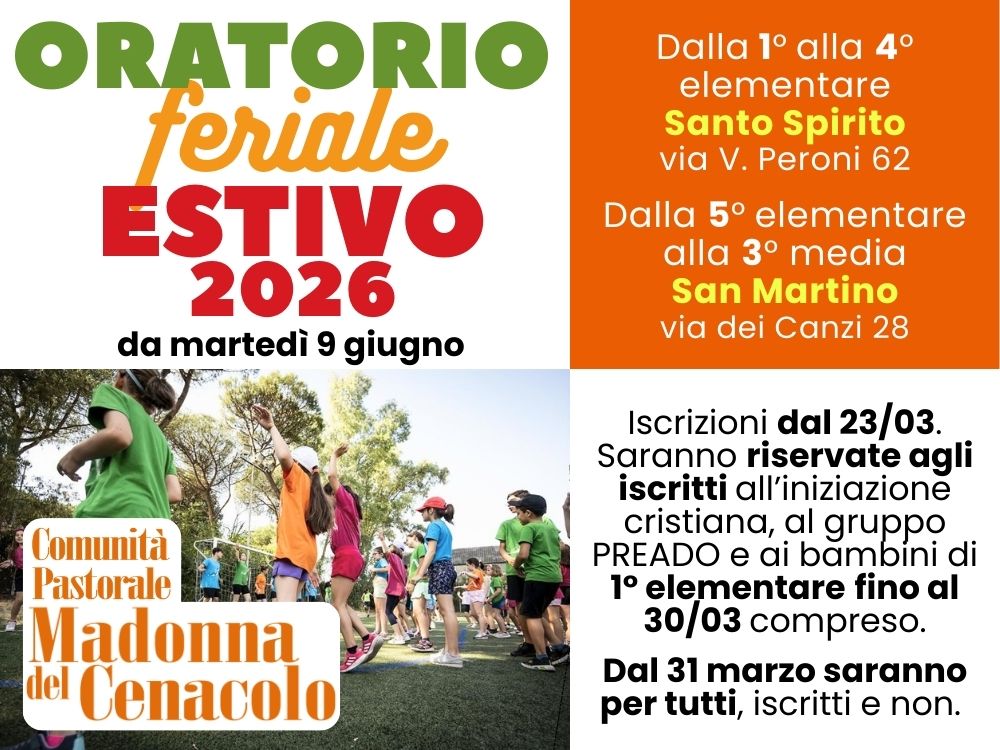 Appuntamenti e avvisi alla Comunità Pastorale – dal 15/03/2026 – RINVIO Postato il 14 marzo 2026 di cpmadonnadelcenacolo CONSULTA IL NOTIZIARIO degli avvisi settimanali “Noi a4” in formato PDF SPECIALE ISCRIZIONI ORATORIO ESTIVO 2026 GRUPPI DI ASCOLTO DELLA PAROLA 2025-2026. Prossimo incontro 21/03. Quaresima di carità con Caritas: la raccolta missionaria QUARTO D’ORA DELLA FEDE – Quaresima 2026. Con AUDIO degli incontri precedenti. AGENDA DI QUARESIMA 2026 ARMONIE IN CENACOLO: Coro TE LAUDAMUS per la pace GITA DI COMUNITA’ a SABBIONETA il 19/04/2026. Iscrizioni dal 22/03, informazioni all’interno. Veglia per la Giornata dei missionari martiri 24/3 ore 18.45 e mostra “Chiamati due volte. I martiri d’Algeria” (fino al 29/03) HANS MEMLING, La Crocifissione. In mostra dal 19-02 al 17-05 al Museo Diocesano di Milano Arcivescovo Mario Delpini: «Il Papa ha espresso l’orientamento a non accettare subito le mie dimissioni» Scarica il notiziario quindicinale con gli approfondimenti sulla comunità PROGETTO PASTORALE della Comunità Pastorale Madonna del Cenacolo VAI ALL’HOME PAGE DEL SITO Condividi: Invia un link a un amico via e-mail (Si apre in una nuova finestra) E-mail Condividi su WhatsApp (Si apre in una nuova finestra) WhatsApp Tweet Stampa (Si apre in una nuova finestra) Stampa Mi piace Caricamento... Correlati