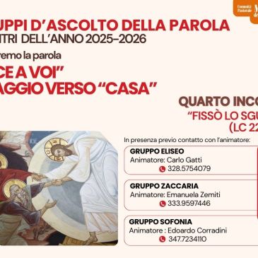 GRUPPI DI ASCOLTO DELLA PAROLA 2025-2026. Prossimo incontro 21/02.