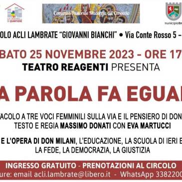 ACLI: “La parola fa eguali” spettacolo a tre voci femminili su DON MILANI