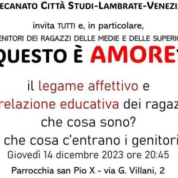 L’Assemblea Sinodale del nostro decanato Città Studi-Lambrate-Venezia sta cercando di dare contenuti sempre più concreti e propositivi alle riflessioni dei Tavoli creati per affrontare le sfide della pastorale degli adolescenti, come ci siamo impegnati a fare in questi mesi. Dal Tavolo II sul tema della “Educazione affettiva degli adolescenti” ci viene una proposta che abbiamo ritenuto urgente e … More Decanato: INCONTRO per i GENITORI di MEDIE e SUPERIORI