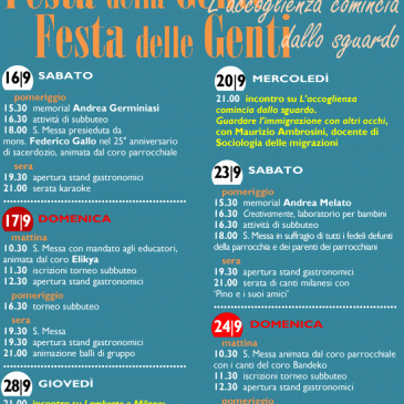Festa della Gente, Festa delle Genti, 16-17, 23-24, 20 e 28 settembre