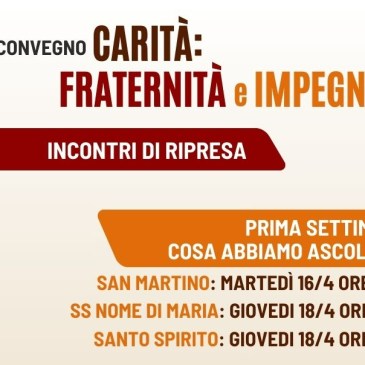 CONVEGNO CARITA’: Fraternità e Impegno – INCONTRI DI RIPRESA del convegno