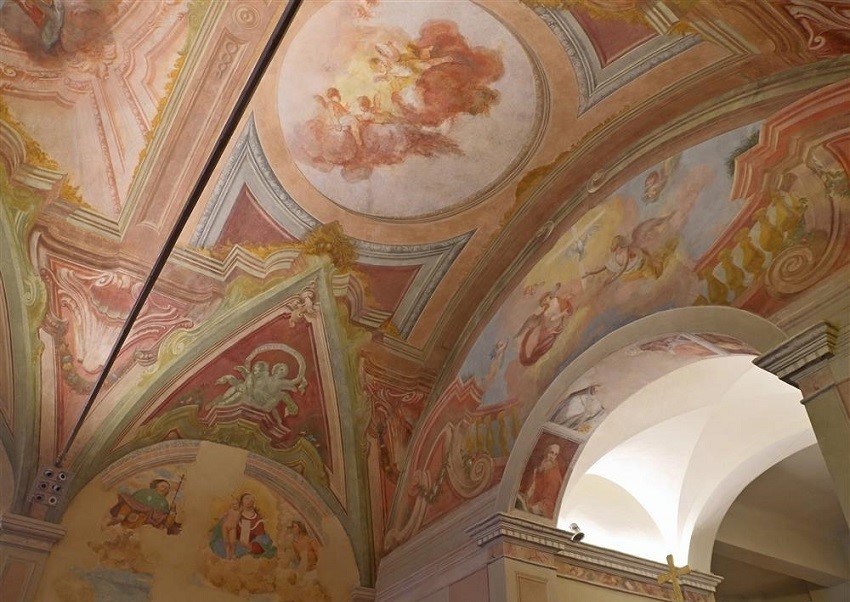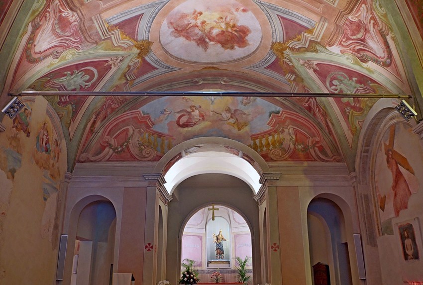 Negli affreschi nella navata prevalgono peraltro tonalità pastello dell’azzurro, del verde e del rosa, che differenziano la decorazione interna di questo piccolo santuario da quella abituale nella maggior parte delle chiese milanesi più famose.