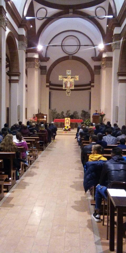 L’interno della chiesa si presenta ampia e luminosa, orientata classicamente con l’altare verso il sorgere del sole. In essa trovavano posto gli ospiti dell’istituto, che in alcuni anni giunsero ad essere anche 500.